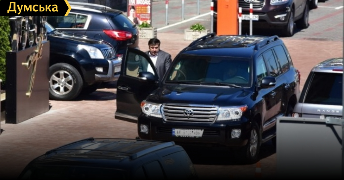1. «Машина оформлена на охранную фирму.» 2. «в пресс-службе губернатора сразу же поспешили откреститься от угнанного внедорожника стоимостью в почти 6 миллионов гривен, распространив сообщение о том, что никакой бронированной «Тойоты» у Саакашвили в собственности нет.»