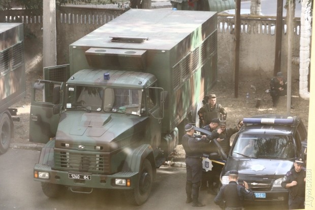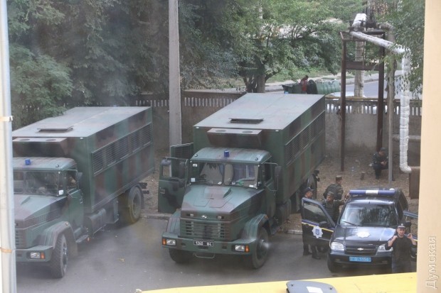 В Приморском райсуде Одессы, куда вот-вот доставят задержанных милицией руководителей «Правого сектора» и Автомайдана, усилили меры безопасности.