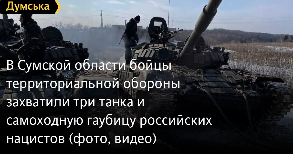 Три танка Т-72Б и 152-мм самоходную артустановку 2С19 «Мста-С» захватили бойцы территориальной обороны Сумской области.