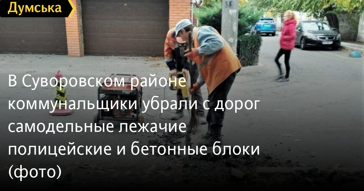 Сотрудники КП «Городские дороги» демонтировали лежачие полицейские, ограды и бетонные блоки, которые местные жители незаконно установили на дорогах в Суворовском районе.