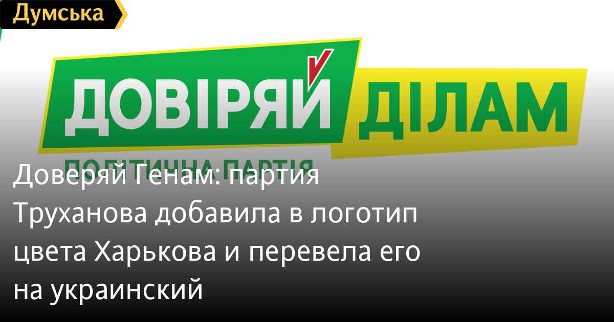 На страницах политсилы в соцсетях и на афишах партийных мероприятий теперь красуется новая эмблема — похожая на старую, но в других цветах (зеленом, белом и желтом, плюс красная кратка в букве «й», похожая на галочку в избирательном бюллетене) и с надписью по-украински — «Довіряй ділам». Правильнее было бы написать «справам», но «діло» в украинском словаре тоже есть.