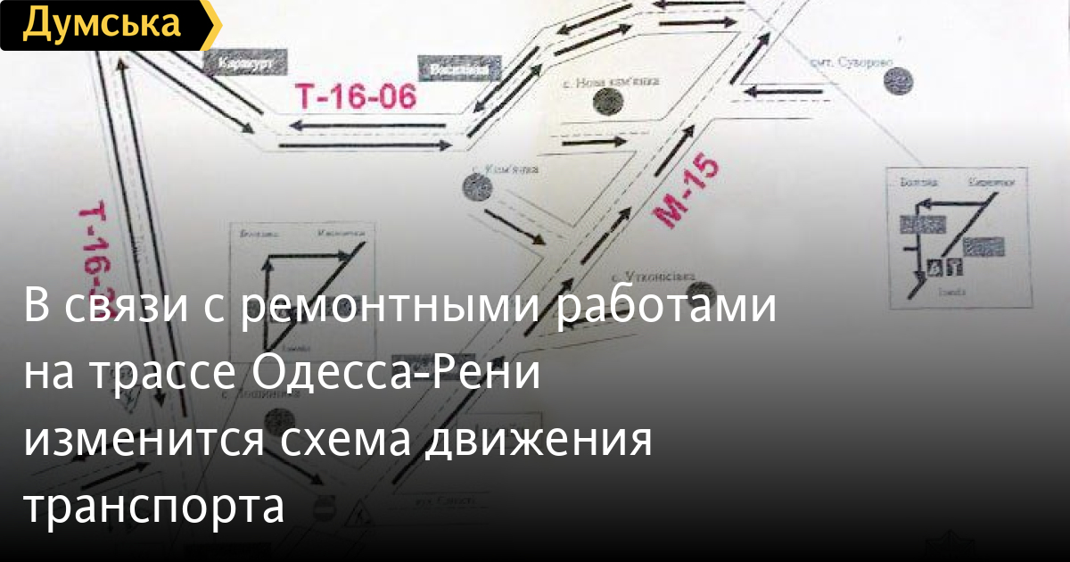 У зв'язку з ремонтними роботами в межах залізничного переїзду колія № 121 станція Ізмаїл — Порт Угольний, який знаходиться на ділянці автомобільної дороги М-15 Одеса — Рені (на Бухарест), буде змінено рух транспорту.