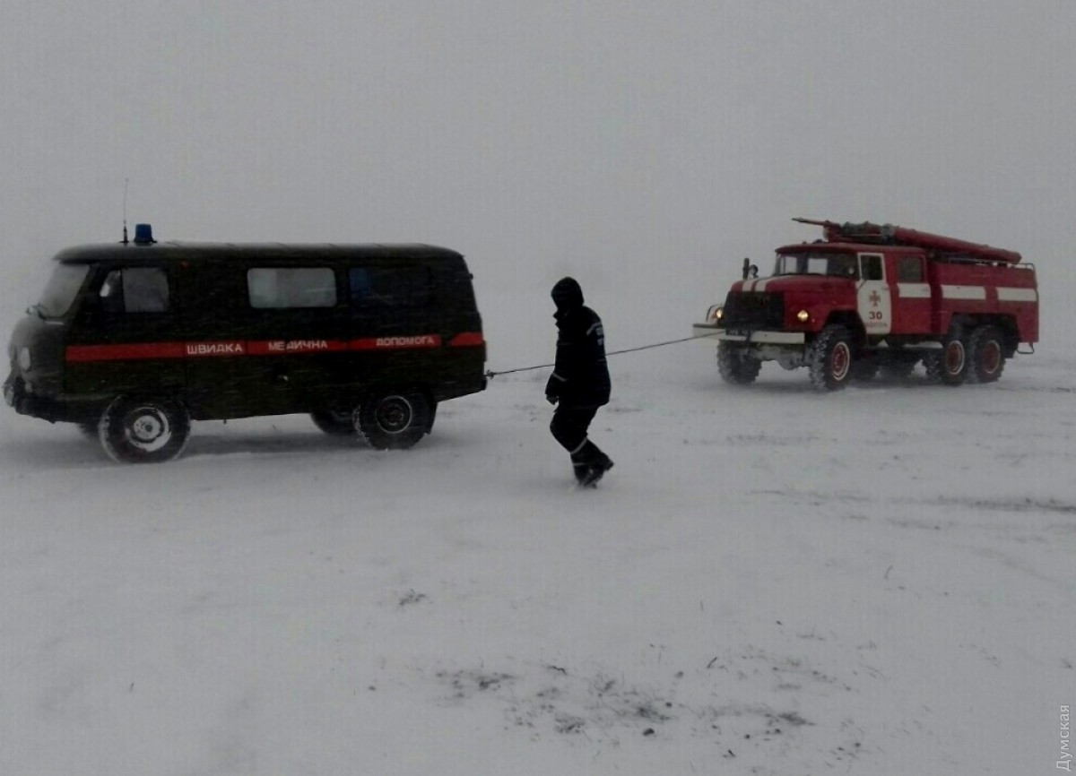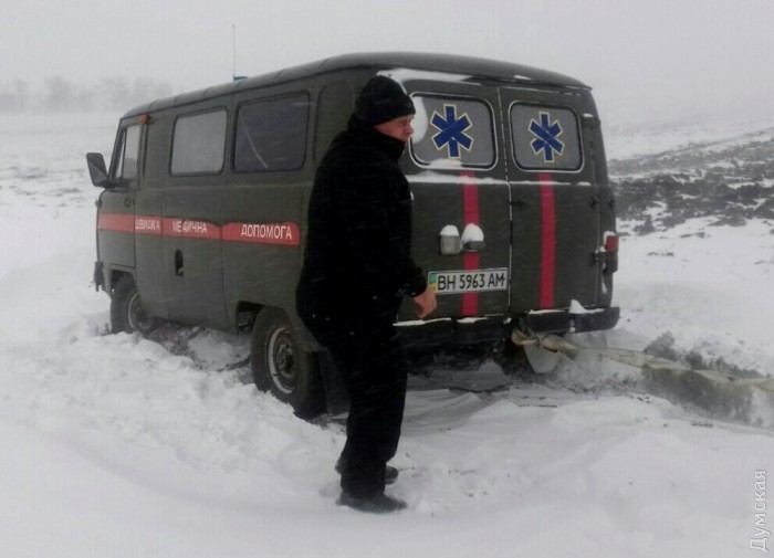 У села Спасское Татарбунарского района в снежный плен попало 23 автомобиля, в том числе карета скорой помощи, направлявшаяся на вызов. Подразделения ГСЧС и службы автомобильных дорог вытащили их из сугробов.