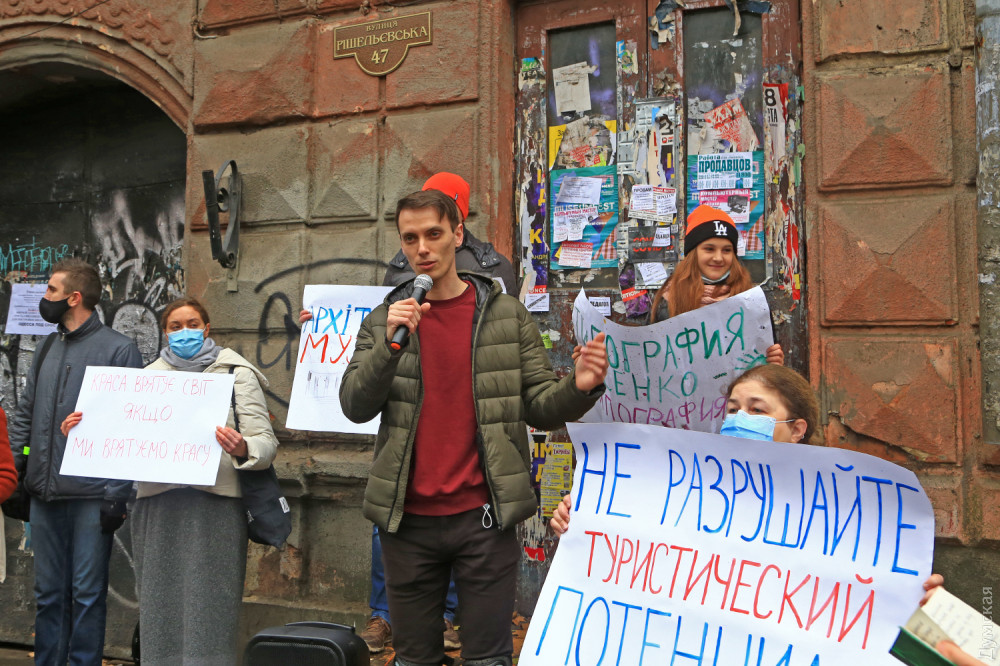 «Первый запрос я направил в Минкульт, чтобы выяснить, выдавалось ли разрешение на проведение работ. Это исторический ареал, и без такого разрешения стройка просто не может начаться. В историко-архитектурном плане и Генплане эти здания еще числятся как памятники. Второй запрос я направил в Государственную архитектурно-строительную инспекцию, чтобы получить копию проекта. Эти дома снесут, если мы будем пассивны. Сегодня на митинг пришло много людей, для Одессы это очень хорошо, и пока мы будем собираться, пока будет общественное давление, они будут нас бояться, и мы сохраним Одессу», — сказал он.