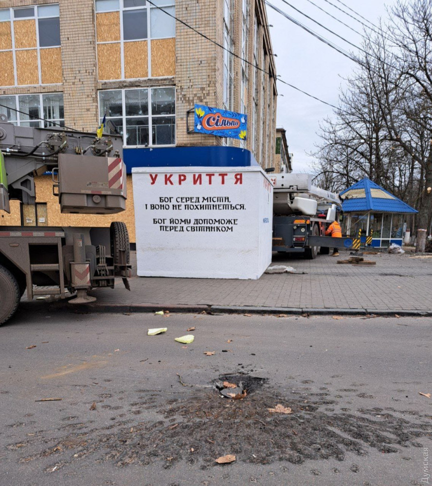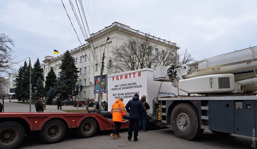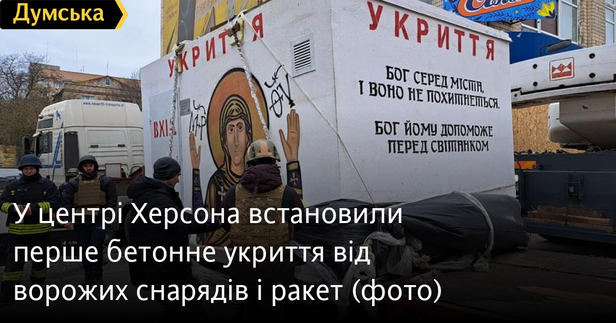 У Херсонській міській раді повідомили, що бетонний бункер встановили поруч із місцем прильотів ворожих снарядів під час артобстрілу 24 грудня. Тоді російські нацисти вбили 10 містян, понад 50 осіб дістали поранення.