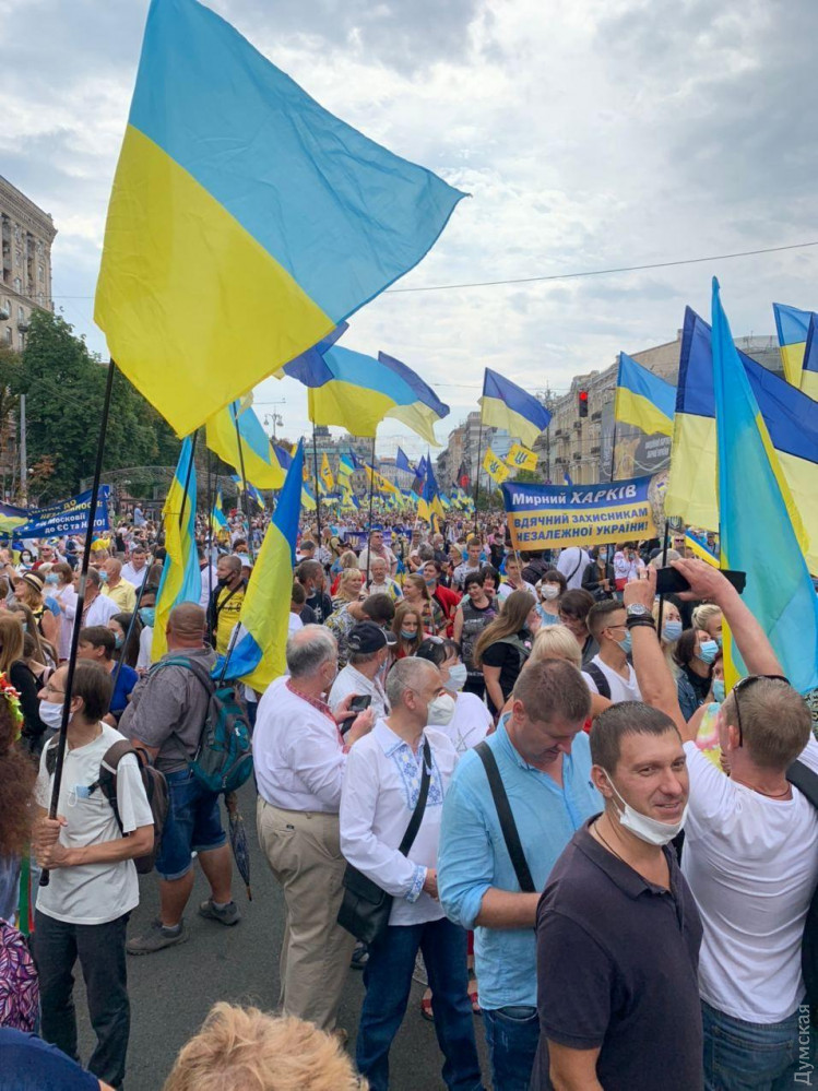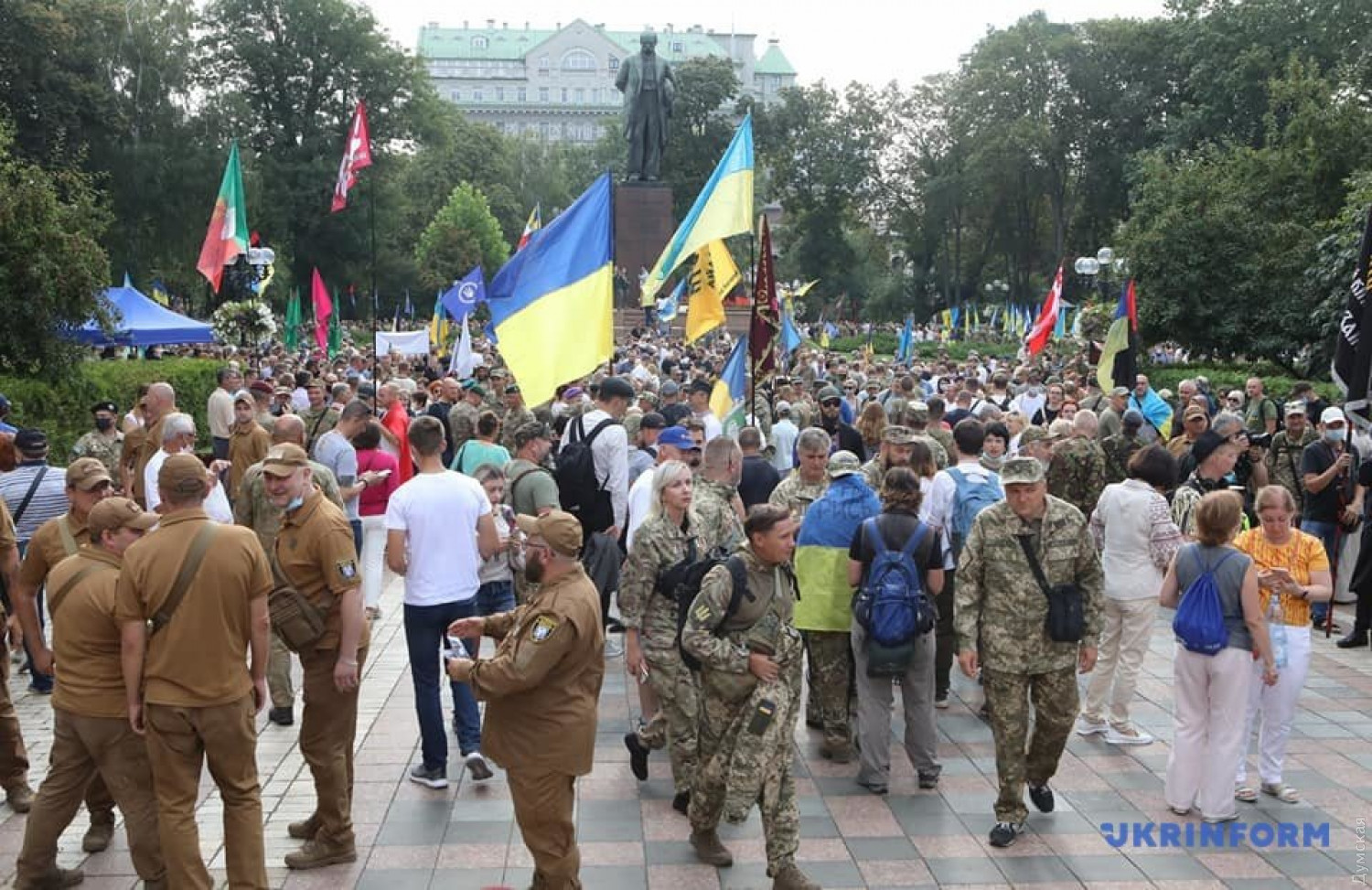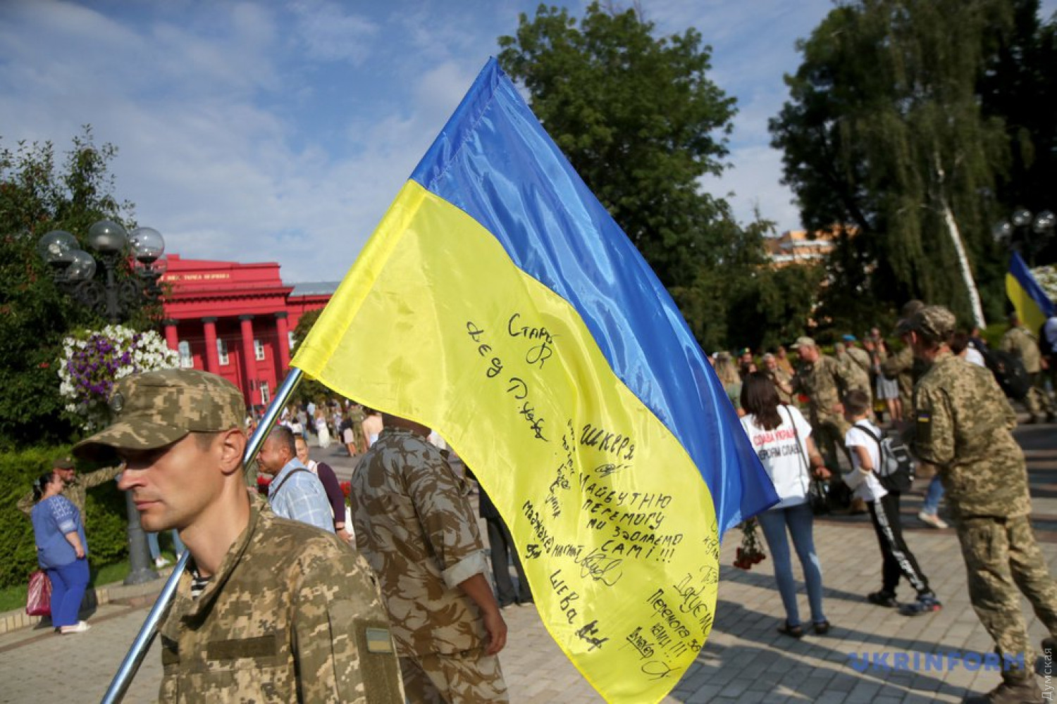 Сегодня, 24 августа, в центре Киева по случаю Дня независимости Украины проходит Марш защитников, в котором участвуют ветераны АТО и ООС, а также родственники бойцов, погибших на востоке Украины. Колонна участников Марша защитников Украины пройдет от парка Шевченко до Майдана. Вдоль всего маршрута следования стоят люди с флагами и цветами. Как сообщают столичные СМИ, после окончания марша участники акции почтят память погибших героев у Стены Памяти в Свято-Михайловском Златоверхом соборе. Фото — «Громадське радіо», «Укрінформ» СМЕРТЬ РОССИЙСКИМ ОККУПАНТАМ! Заметили ошибку? Выделяйте слова с ошибкой и нажимайте control-enter |