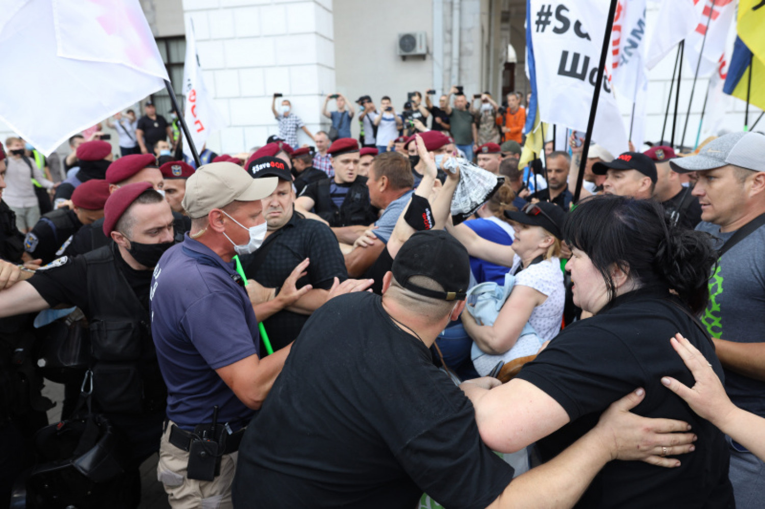 Утром 29 июня на Майдане Независимости в Киеве произошла потасовка между протестующими ФОПами и правоохранителями. Предприниматели собрались в центре, чтобы провести акцию «Похороны микробизнеса» и пройти маршем с гробом и ритуальными венками к Офису президента и Верховной Раде. Но полиция заблокировала им путь и решила отобрать реквизит. Это и привело к потасовке. В результате правоохранителям удалось завладеть гробом, а ФОПы изменили свой маршрут и направились в сторону Европейской площади, чтобы ходить там по кругу. Фото — РБК-Украина СМЕРТЬ РОССИЙСКИМ ОККУПАНТАМ! Заметили ошибку? Выделяйте слова с ошибкой и нажимайте control-enter |