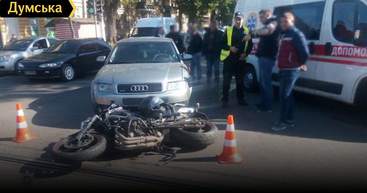 Сегодня около 14 часов в центре Одессы случилась авария с участием мотоцикла. По предварительной информации патрульной полиции, водитель автомобиля «Ауди», выполняя поворот налево с улицы Успенской на Тираспольскую, не убедился в безопасности маневра и совершил столкновение с мотоциклом Yamaha, который двигался во встречном направлении со стороны Дегтярной.