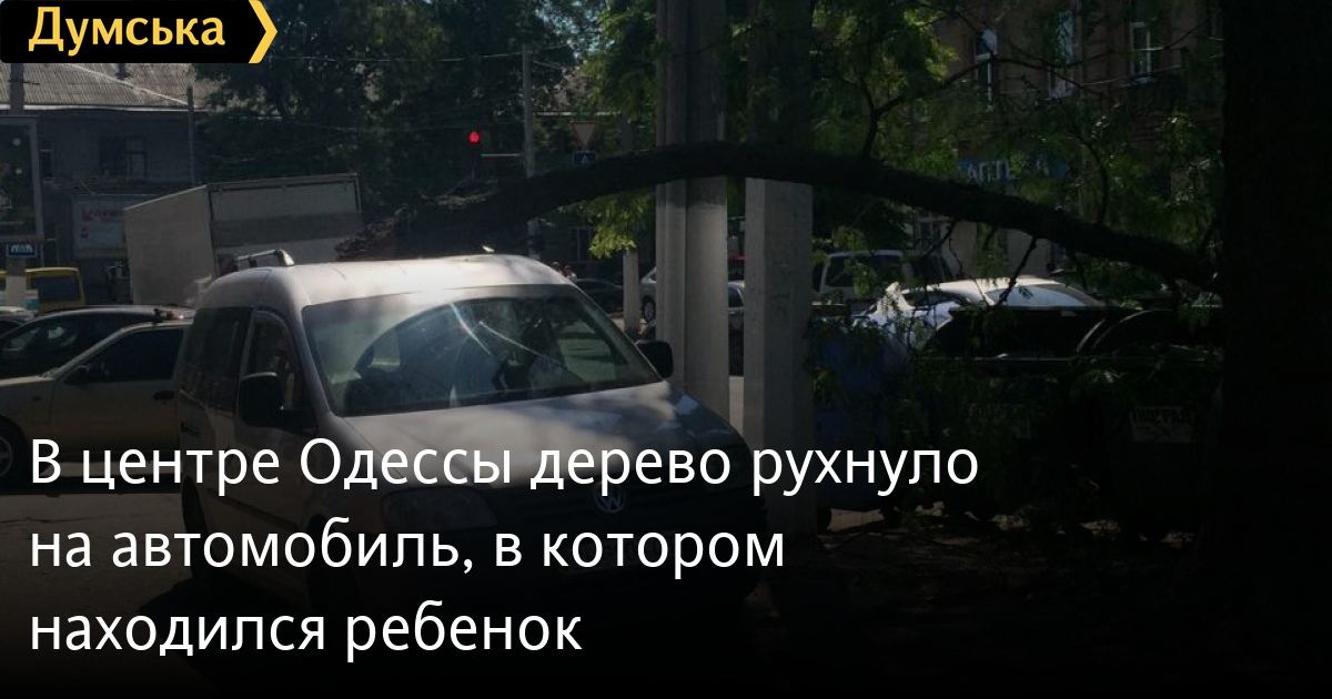 Сегодня утром на Малой Арнаутской в районе дома № 2 огромное дерево рухнуло на припаркованный автомобиль «Фольксваген» и пробило его крышу.