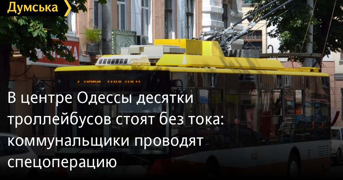 Как сообщили «Думской» в пресс-службе КП «Одесгорэлектротранс», в этом месте огромное дерево повисло над проезжей частью, угрожая рухнуть на контактную сеть и проезжающие авто, поэтому было принято решение его спилить. Работают сотрудники КП «ОГЭТ» и КП «Горзелентрест».