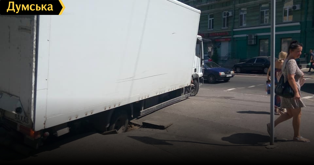 При этом это все происходило на тротуаре, на который грузовик заезжать по правилам не должен. Напомним, в июне провал произошел на Греческой площади – в яму во время движения попало переднее колесо автомобиля «Тойота Приус».