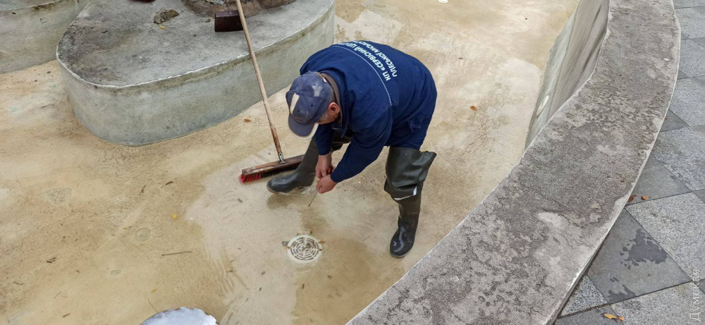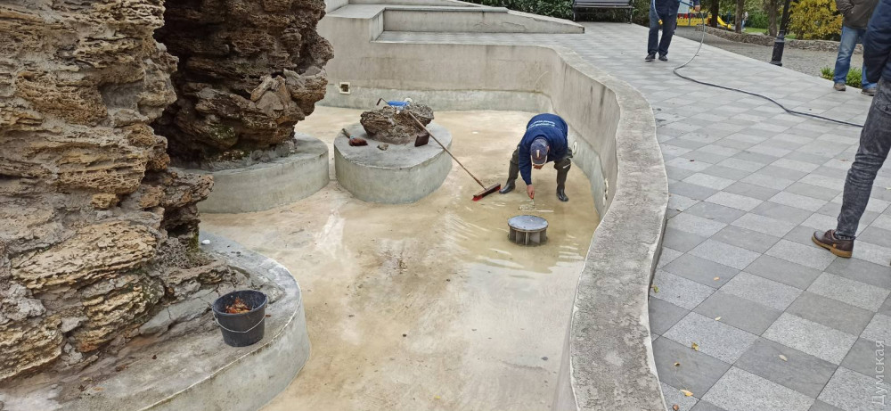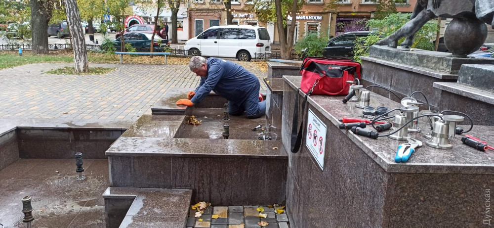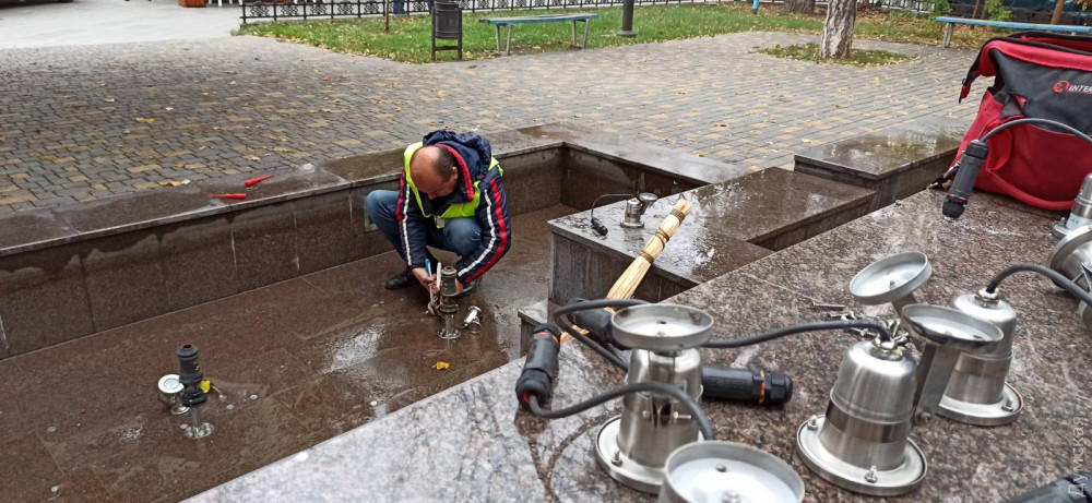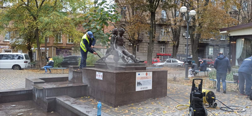 Сотрудники КП «Сервисный центр» подготовили к зимнему сезону фонтан «Петя и Гаврик» на Преображенской и грот в Стамбульском парке.