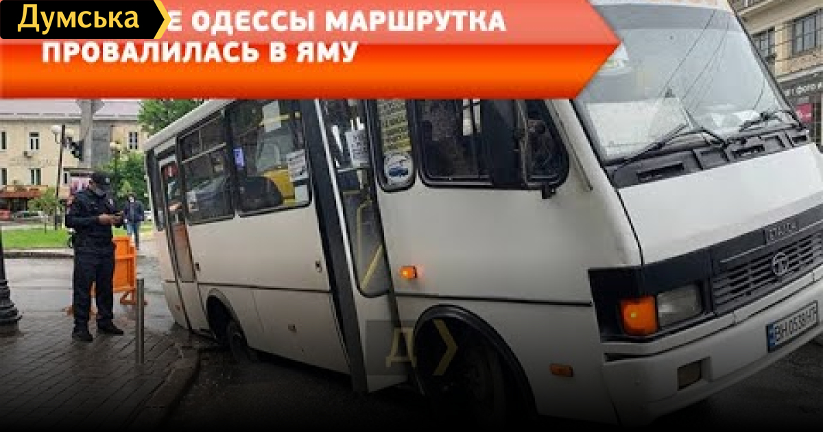 В центре Одессы маршрутка провалилась в яму