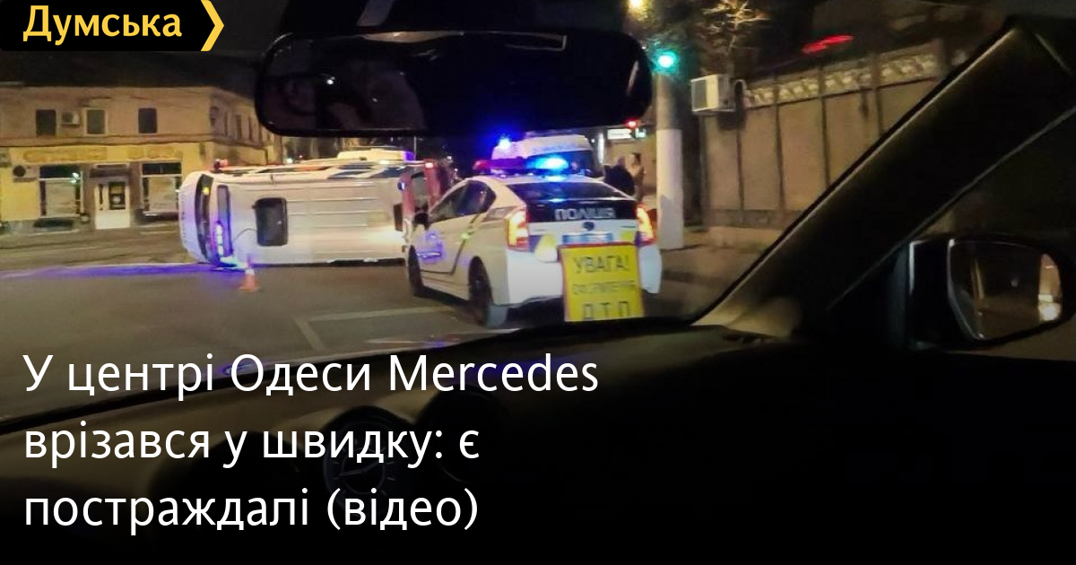 Аварія за участю машини швидкої допомоги та автомобіля Mercedes сталася ввечері 6 квітня на розі вулиць Торгової та Новосельського. Як повідомили очевидці, легковик врізався в машину швидкої допомоги. За попередніми даними, серед медиків є постраждалі. Сама машина швидкої допомоги від удару перекинулася на бік. Офіційної інформації поки що немає. СМЕРТЬ РОСІЙСЬКИМ ОКУПАНТАМ! Помітили помилку? Виділяйте слова з помилкою та натискайте control-enter Новини по цій темі: 10 листопада 2025: Смертельна аварія під Одесою: водія виправдали через відсутність доказів 30 серпня 2025: Машина вилетіла в кювет: мер Рені потрапив в аварію, його мати загинула, а маленький син у лікарні (фото) 18 серпня 2025: Троє загинули, один у лікарні: на трасі Одеса-Рені водій Mercedes не пропустив фуру (фото) 28 липня 2025: П'яний на "Ягуарі" або гіпертонік? Звільнений топ-посадовець одеської поліції хоче повернутися на службу |