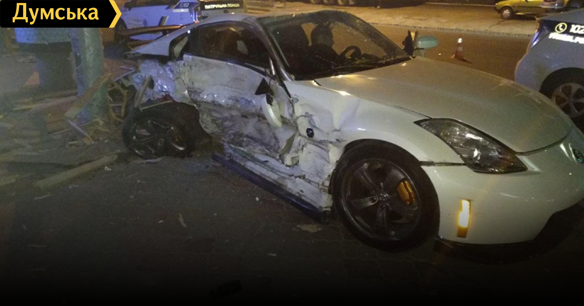Ниссан летел на немалой скорости по Ришельевской в правом крайнем ряду, в сторону ЖД. от удара его развернуло и отбросило на тротуар. по встречке там никто не ехал
