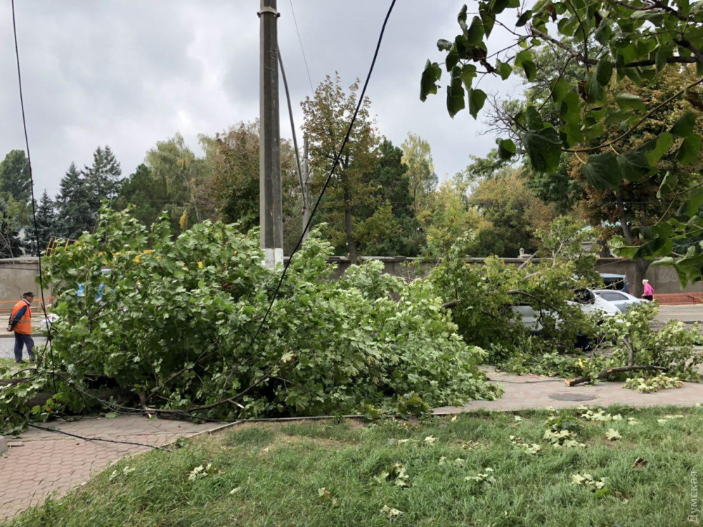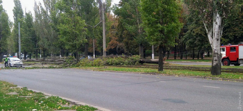 В другом КП, «Одесгорэлектротранс», тоже говорят о трех упавших деревьях, но в других местах — на углу Генерала Петрова и Ицхака Рабина, на Рекордной и на Французском бульваре.