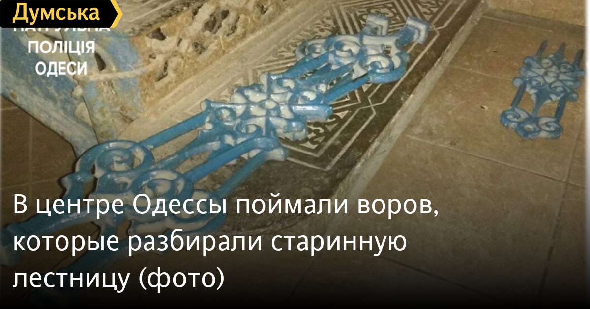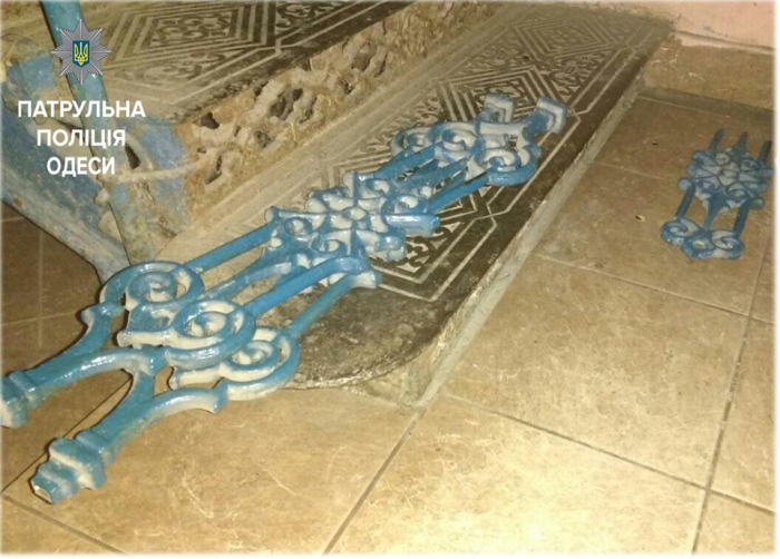 На Базарной улице в Одессе задержали двоих воров, которые в подъезде жилого дома ломали перила старинной лестницы.