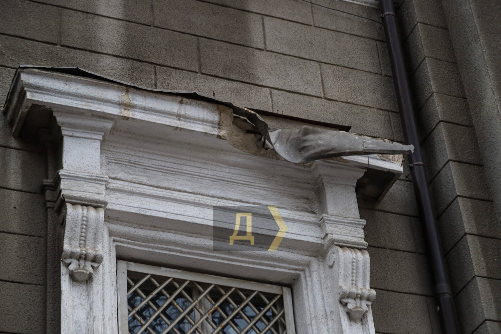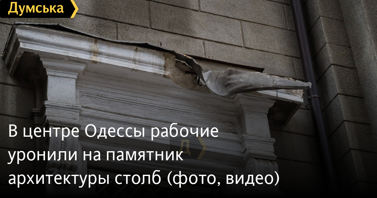 Опора электроосвещения обрушилась на фасад памятника архитектуры, расположенный на пересечении Лермонтовского переулка и Леонтовича.