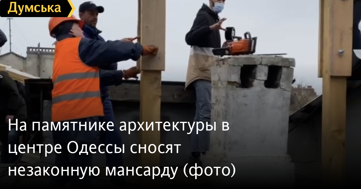 Демонтаж незаконной мансарды, появившейся на крыше памятника архитектуры по адресу Пушкинская, 34, начался сегодня.