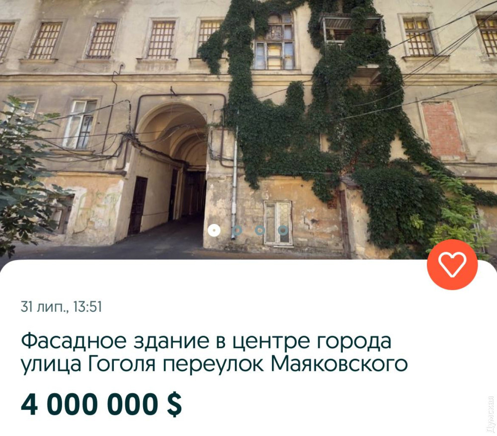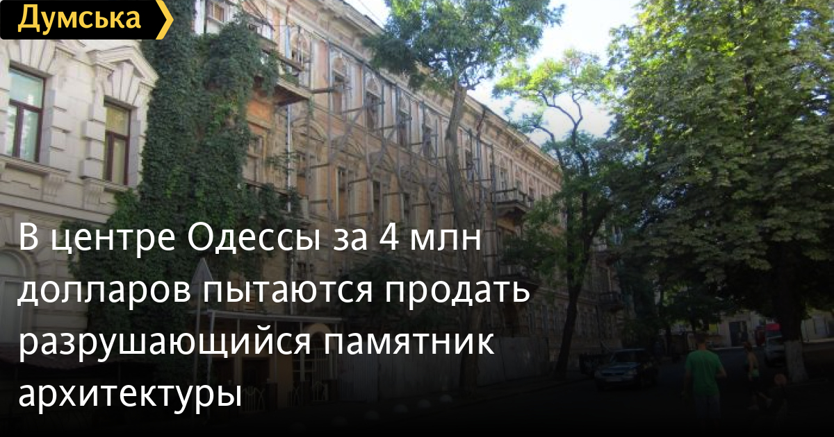 У центрі Одеси за 4 млн доларів намагаються продати пам'ятник архітектури, що руйнуєтьсяПам'ятку архітектури – будинок №23 по вулиці Гоголя виставили на продаж. Відповідне оголошення з'явилось на майданчику OLX, повідомляє кореспондент «Думської». Продавець хоче виручити за 2755 кв. нерухомості 4 млн доларів. Будівля багато років руйнується в самому центрі міста. Ще у 2019 році його закамуфлювали банером, на якому були зображені неіснуючі мансардні поверхи. Тоді ж з'явилося припущення, що пам'ятник реставруватимуть, проте роботи так і не розпочалися. Пам'ятку архітектури — Будинок Вассаля побудували у другій половині XIX за проєктом головного архітектора Одеси Олександра Бернардацці. Використовувався як прибутковий. 1914 року тут розміщувалася редакція газети «Грецька зірка» — єдиного видання міста мовою еллінів. А перед самою революцією у будівлі було іспанське консульство. Найвідоміший мешканець будинку – лікар-психіатр, професор Казанського, Варшавського, Новоросійського та Софійського університетів Микола Попов. 2006-го року будинок передали приватному інвестору для реконструкції у чотиризірковий готель. Проте роботи так не розпочалися через кризу. Будинок Вассаля з 2006 року належить компанії «Карнавал-Юг», засновниками якої є підприємці Ігор Бадюл, Олександр Хаіт, Олександр Єлісєєв, Еліна Ландман, Микита Зарх, Владислав Зарх, Данііл Зарх, Вікторія Білоус. За даними держреєстру речових прав на нерухоме майно, станом на серпень 2025 року власники не змінились. У 2018 році управління охорони культурної спадщини міськради оштрафувало компанію на 170 тисяч грн за ухилення від обов'язків щодо підтримки пам'ятника у належному стані, через що виникла загроза його обвалення. СМЕРТЬ РОСІЙСЬКИМ ОКУПАНТАМ! Помітили помилку? Виділяйте слова з помилкою та натискайте control-enter |