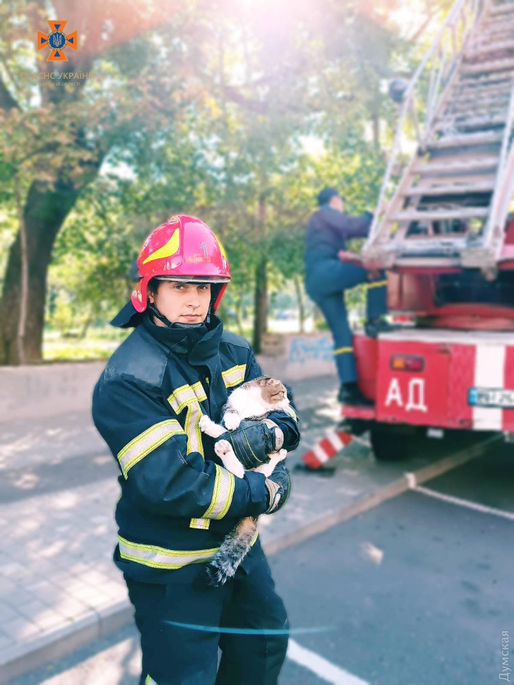 «Котик досі не може відійти від шоку, тихо сидить на руках свого рятівника і не хоче відпускати», — зазначили у відомстві.