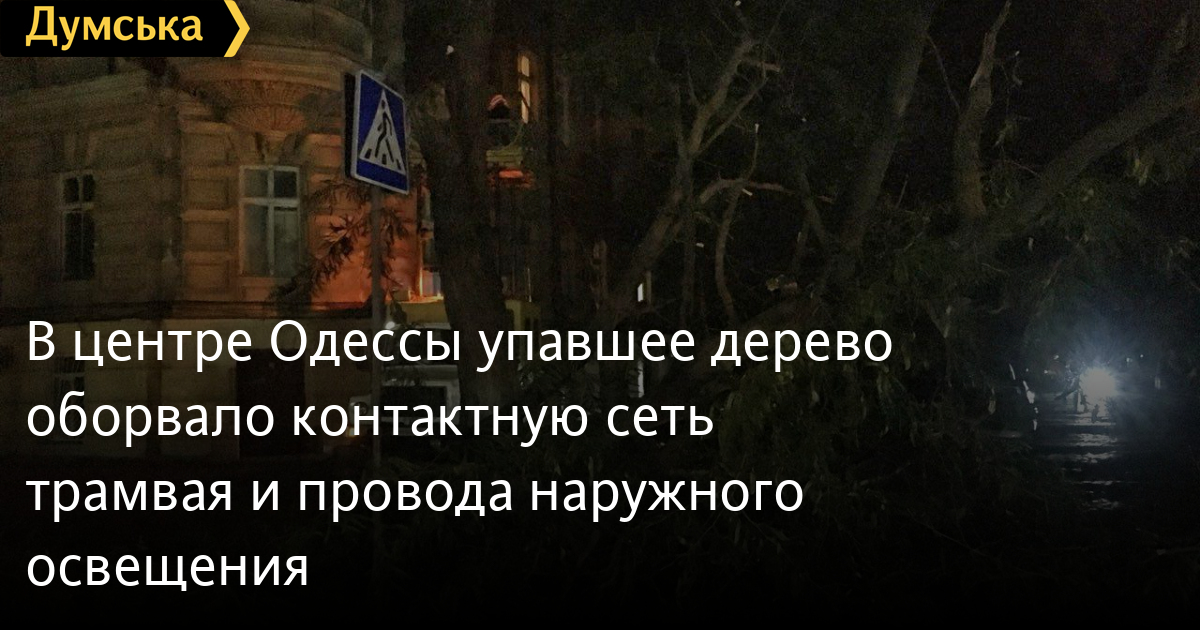 В центре Одессы упавшее дерево оборвало контактную сеть трамвая и провода наружного освещенияБольшое дерево упало на пересечении Нежинской и Дворянской улиц, передает корреспондент «Думской». Оно оборвало контактную сеть 15-го трамвайного маршрута и провода наружного освещения. Без уличного света остались Нежинская (от Спиридоновской до Торговой) и часть Дворянской. На месте работают ремонтники. Восстановить подачу электроэнергии они планируют до полуночи. СМЕРТЬ РОССИЙСКИМ ОККУПАНТАМ! Заметили ошибку? Выделяйте слова с ошибкой и нажимайте control-enter |