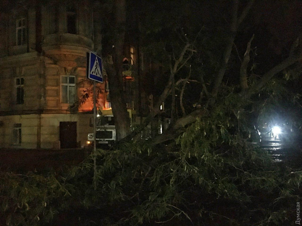 Большое дерево упало на пересечении Нежинской и Дворянской улиц, передает корреспондент «Думской».