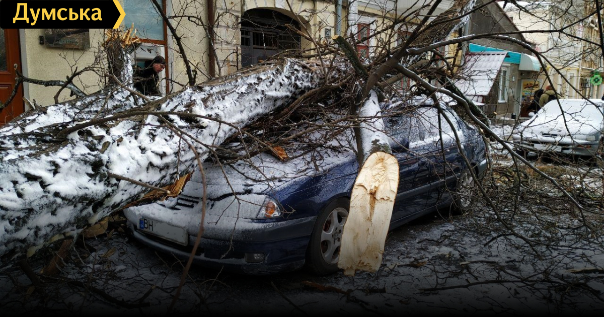 В центре Одессы упавшее дерево повредило машины, а на Таирова чуть не сломало газовую трубу