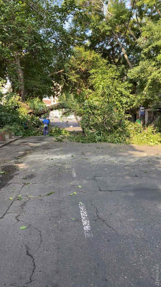 На место оперативно прибыли сотрудники КП «Горзелентрест», которые распилили упавшее дерево и разблокировали улицу. Сейчас там работает бригада КП «Одесгорсвет», которая восстанавливает целостность коммуникаций.