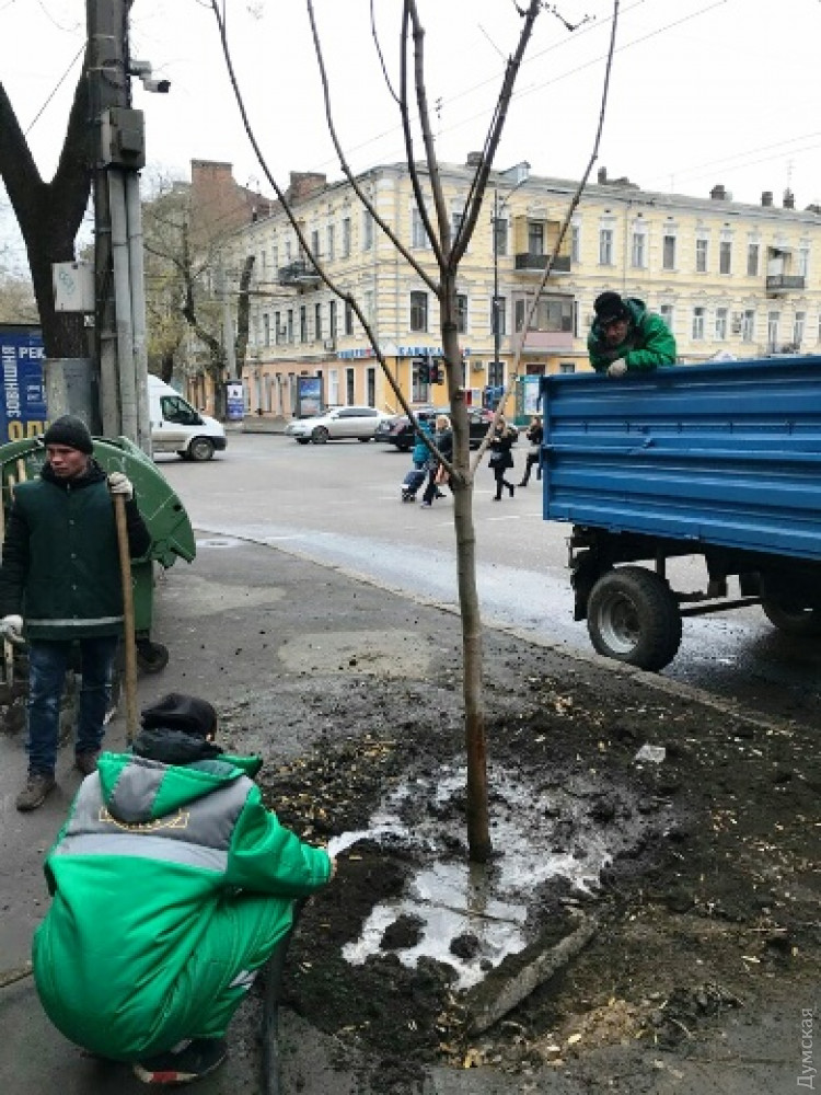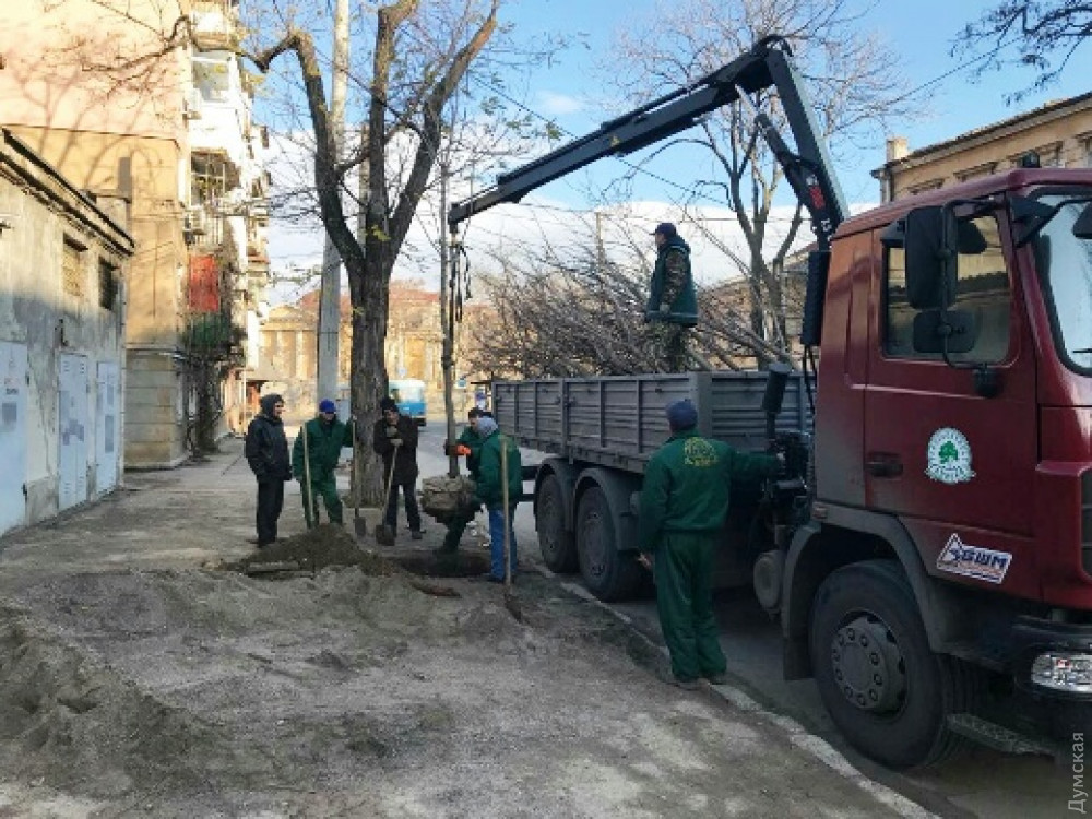 С начала этой недели сотрудники коммунального предприятия «Горзелентрест» высадили в исторической части Одессы еще 38 деревьев. Все деревья — крупномерные, около 1,5 метров высотой и с закрытой корневой системой (с комом земли, что значительно повышает выживаемость саженца).
