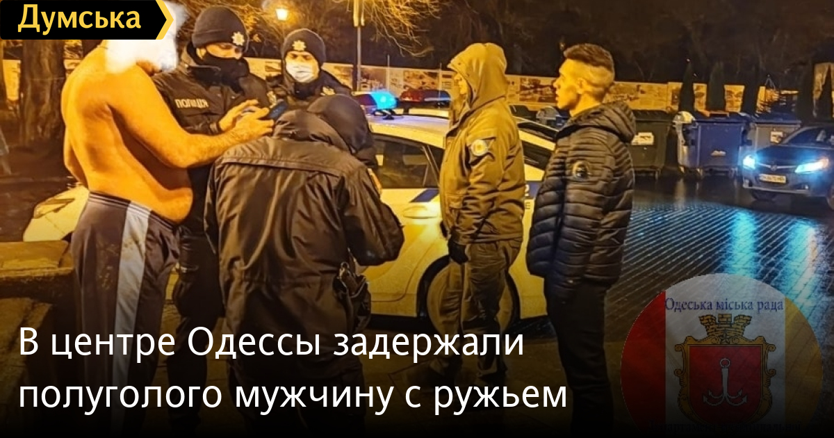 Поздно вечером 1 января сотрудники «Муниципальной стражи» задержали в центре Одессы мужчину, который разгуливал по улице в одних спортивных штанах и с ружьем в руках.