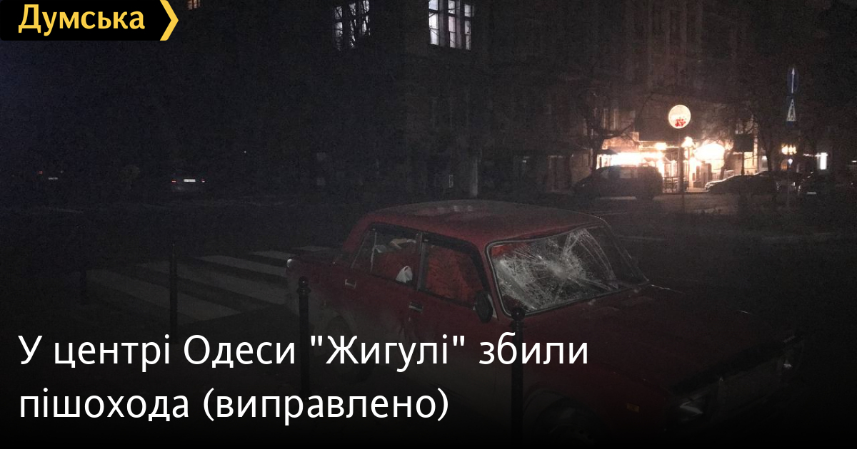 Пішохіда збили «Жигуліі» на вулиці Маразліївській в Одесі. Аварія сталася ввечері 28 грудня біля входу в парк Шевченка. Як стало відомо «Думській», за кермом автомобіля перебував співробітник ДСНС, який був у нетверезому стані. Постраждалий чоловік отримав перелом і травму хребта. На місці ДТП працювали правоохоронці, проте інформації про те, що трапилося, пресслужба патрульної поліції не надала. СМЕРТЬ РОСІЙСЬКИМ ОКУПАНТАМ! Помітили помилку? Виділяйте слова з помилкою та натискайте control-enter Новини по цій темі: 30 серпня 2025: Машина вилетіла в кювет: мер Рені потрапив в аварію, його мати загинула, а маленький син у лікарні (фото) 18 серпня 2025: Троє загинули, один у лікарні: на трасі Одеса-Рені водій Mercedes не пропустив фуру (фото) 28 липня 2025: П'яний на "Ягуарі" або гіпертонік? Звільнений топ-посадовець одеської поліції хоче повернутися на службу 2 квітня 2025: В Одесі водій BMW спровокував аварію, в якій постраждали п`ятеро людей, і втік (фото, відео) |