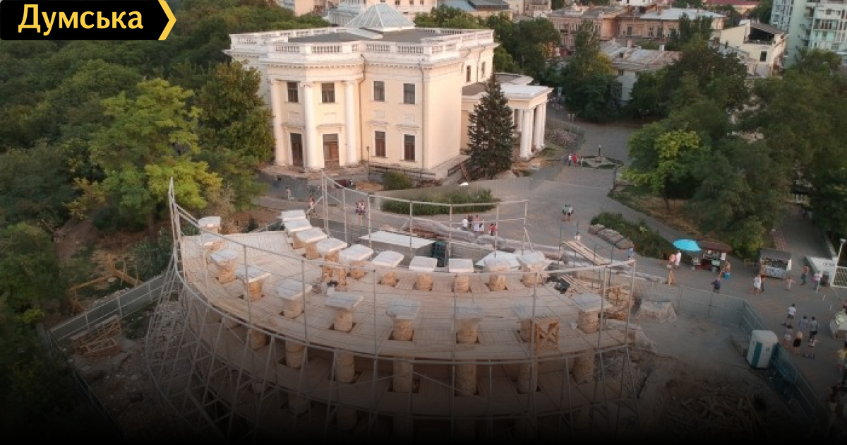 По его словам, обнаруженные в ходе реставрации колоннады арочные цокольные помещения будут приспособлены для музейных целей. В них выставят различные экспонаты, найденные на объекте — плиты с еврейского кладбища, античные амфоры, турецкую трубку, топливный бак от самолета времен Первой мировой и другие.