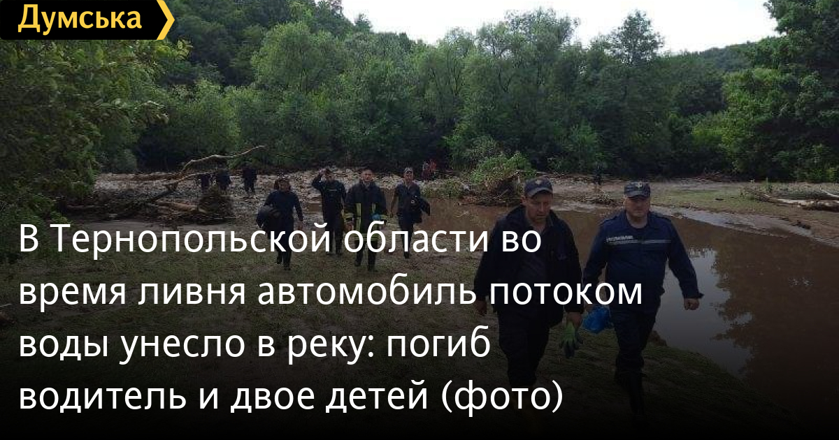 В селе Лищанцы в Чортковском районе Тернопольской области вчера вечером во время сильного ливня поток воды снес автомобиль с проезжей части в реку Стрила.