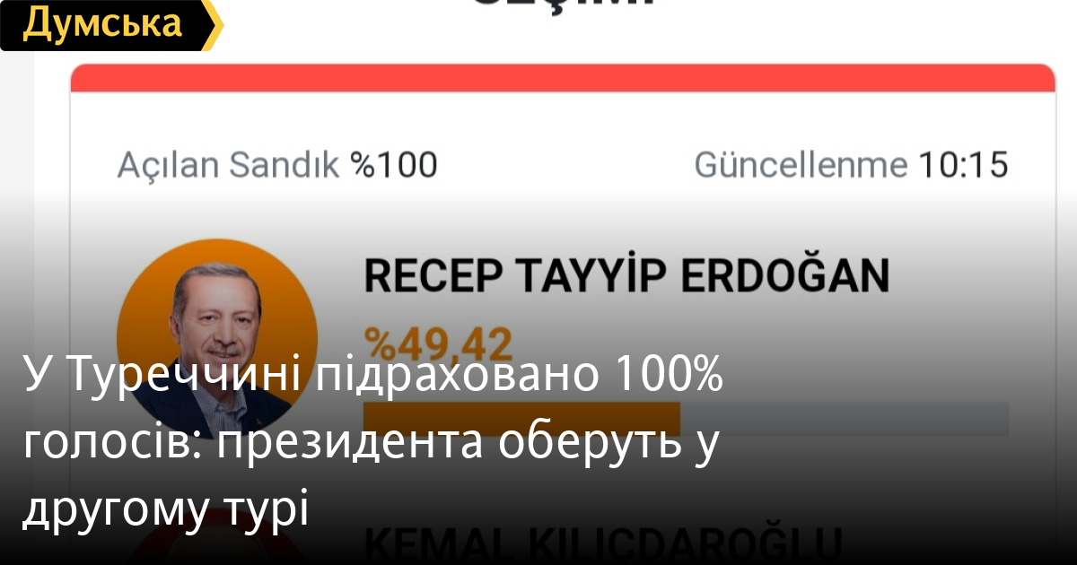 У Туреччині підраховано 100% голосів: президента оберуть у другому турі👍 265 🔥 34 👎 9 ❤ 9 🙏 2 Чинний президент Туреччини Реджеп Ердоган і лідер об'єднаної опозиції Кемаль Кілічдароглу виходять у другий тур виборів голови держави. Підраховано 100% голосів, пише видання Sozcu. Станом на 6:00 15 травня в Туреччині підраховано 100% голосів виборців. Згідно з даними Вищої виборчої ради, чинний президент Реджеп Таїп Ердоган набирає 49,34%, лідер опозиції Кемаль Кілічдароглу — 45%. Ердоган перемагає у 51 провінції, лідер опозиції Кілічдароглу — у 30 (на сході, заході та частково на півдні). Столична провінція Анкара і Стамбул продемонстрували більшу підтримку Кілічдароглу. Президентські перегони продовжаться у другому турі, який відбудеться 28 травня. Нагадаємо, 14 травня в Туреччині відбулися президентські та парламентські вибори. О 17:00 завершилося голосування. Згідно з інформацією ЗМІ, явка виборців становила рекордні 88,3%. Загалом для виборців по всій країні було встановлено 191 885 урн для голосування. СМЕРТЬ РОСІЙСЬКИМ ОКУПАНТАМ! Помітили помилку? Виділяйте слова з помилкою та натискайте control-enter |