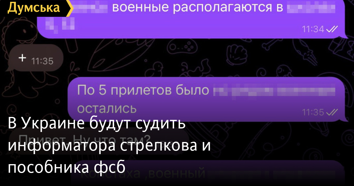 В Україні судитимуть інформатора стрєлкова та спільника фсбСлужба безпеки України передала до суду обвинувальний акт щодо жителя Донецької області, який після початку повномасштабного вторгнення запропонував свою «допомогу» терористу ігорю стрєлкову-гіркіну. У СБУ повідомили, що агент стрільця збирав інформацію про маршрути переміщення та місця базування Сил оборони України у Слов'янську. Крім того, він передавав координати об'єктів критично важливої інфраструктури. Ще один підсудний – мешканець селища Клебан-Бик на Донеччині, якого завербувала фсб. Він проводив диверсійно-розвідувальну діяльність у Краматорському районі, стежив за колонами української військової техніки та передавав їхні координати своїм кураторам. Обох фігурантів судитимуть за статтею 114-2 (несанкціоноване поширення інформації про переміщення Збройних сил України), їм загрожує до 12 років ув'язнення. СМЕРТЬ РОСІЙСЬКИМ ОКУПАНТАМ! Помітили помилку? Виділяйте слова з помилкою та натискайте control-enter |