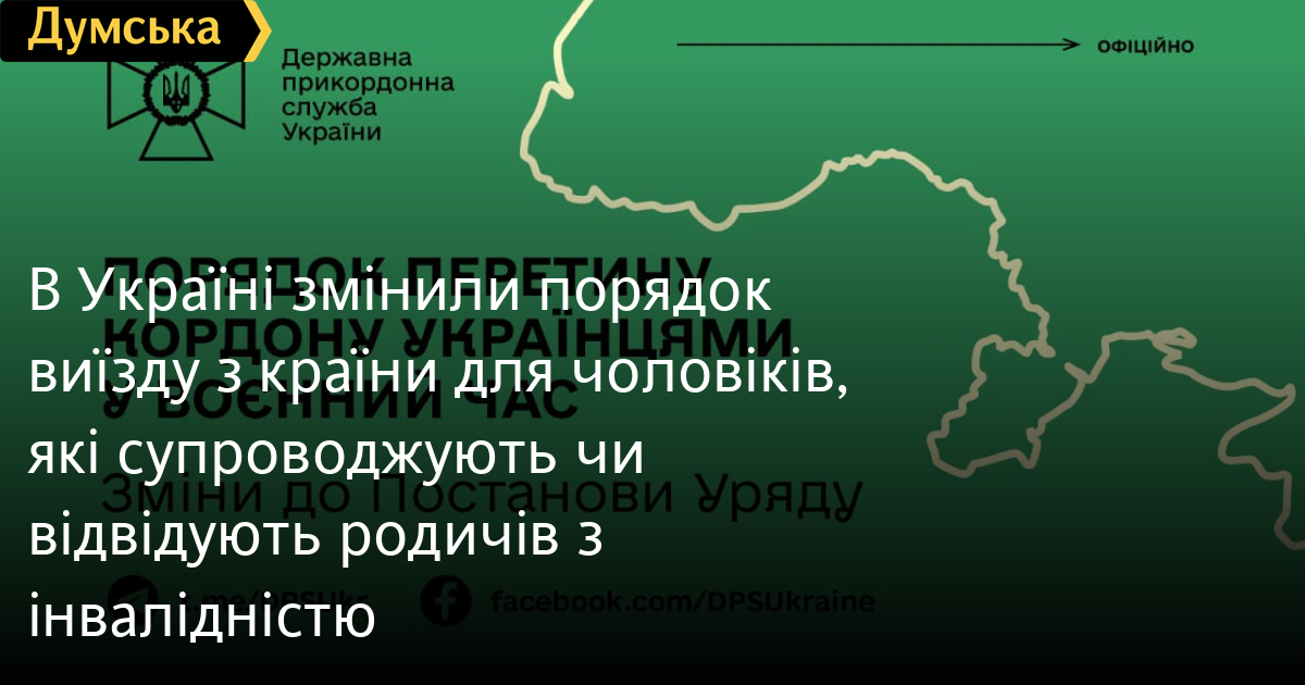 Як повідомили у Державній прикордонній службі України, прийняті Кабміном 10 вересня зміни стосуються чоловіків, які супроводжують родичів з інвалідністю або хочуть поїхати за кордон, щоб їх відвідати.