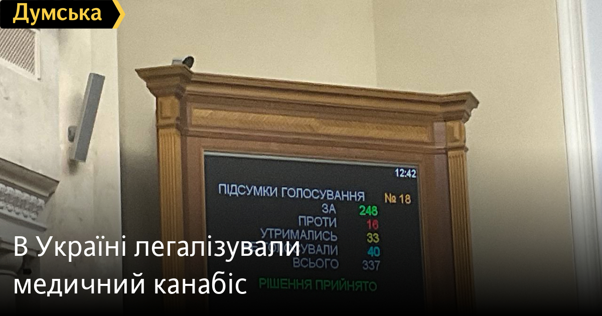 Верховна Рада прийняла у другому читанні законопроєкт №7457 про легалізацію медичного канабісу. Проголосували «за» 248 народних депутатів.