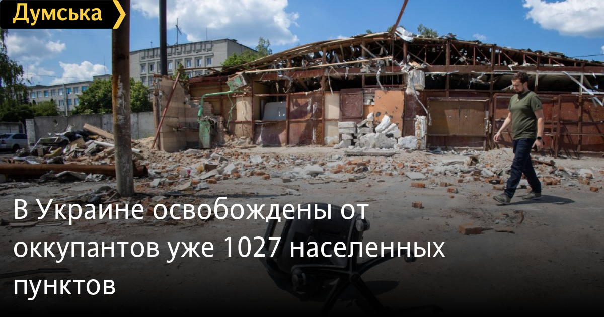 1027 украинских населенных пунктов уже освобождены от захватчиков и постепенно возвращаются к мирной жизни. На 95% освобожденных территорий начали работу гуманитарные штабы.