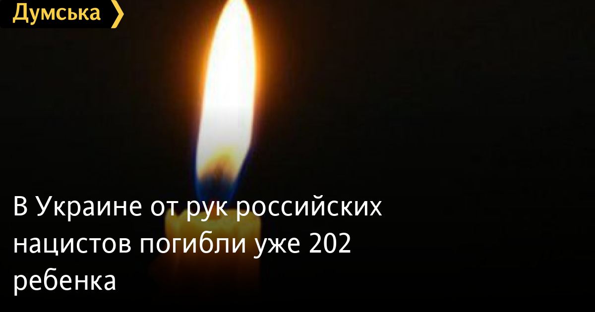 С начала полномасштабного военного вторжения рф в Украину российские нацисты убили 202 детей в нашей стране.