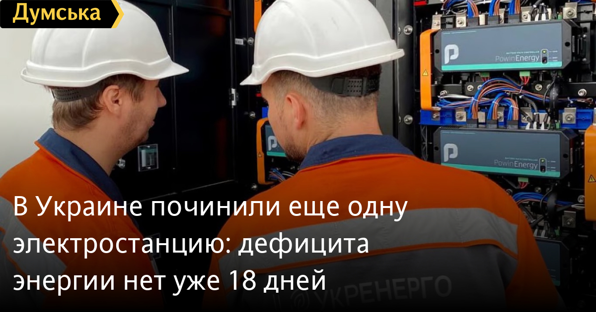 В Україні полагодили ще одну електростанцію: дефіциту енергії немає вже 18 днівФахівці «Укренерго» продовжують відновлювати пошкоджені ворожими ракетами та дронами об'єкти генерації електроенергії. Після ремонту до ладу введено ще одну електростанцію, що збільшило стійкість енергосистеми. В «Укренерго» повідомили, що дефіциту енергії в країні немає вже 18 днів. Завдяки весняним паводкам зросла продуктивність роботи гідроелектростанцій, також почалося сезонне зростання генерації «зеленої енергії», триває імпорт електрики з країн Євросоюзу. У підсумку, зараз ліміти на споживання електрики в областях не вводяться. В Одесі та області тривають роботи для нарощування стабільності та стійкості роботи раніше пошкоджених електромереж. У Донецькій, Херсонській, Харківській та Дніпропетровській областях ремонтні бригади лагодять пошкоджені ворожими обстрілами лінії електропередач. СМЕРТЬ РОСІЙСЬКИМ ОКУПАНТАМ! Помітили помилку? Виділяйте слова з помилкою та натискайте control-enter |