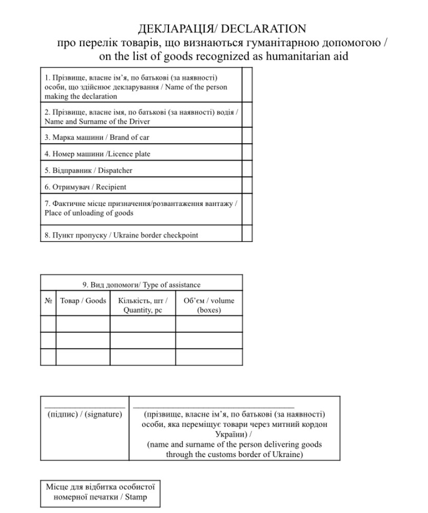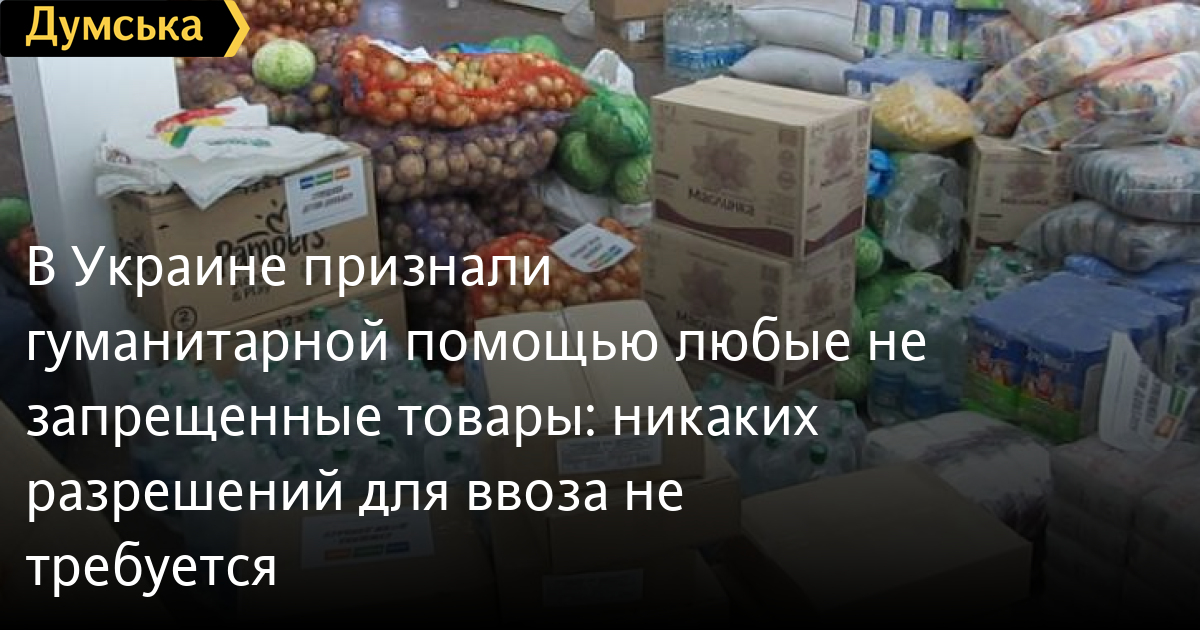 Гуманитарной помощью признаются любые легальные товары, ввозимые на таможенную территорию Украины.