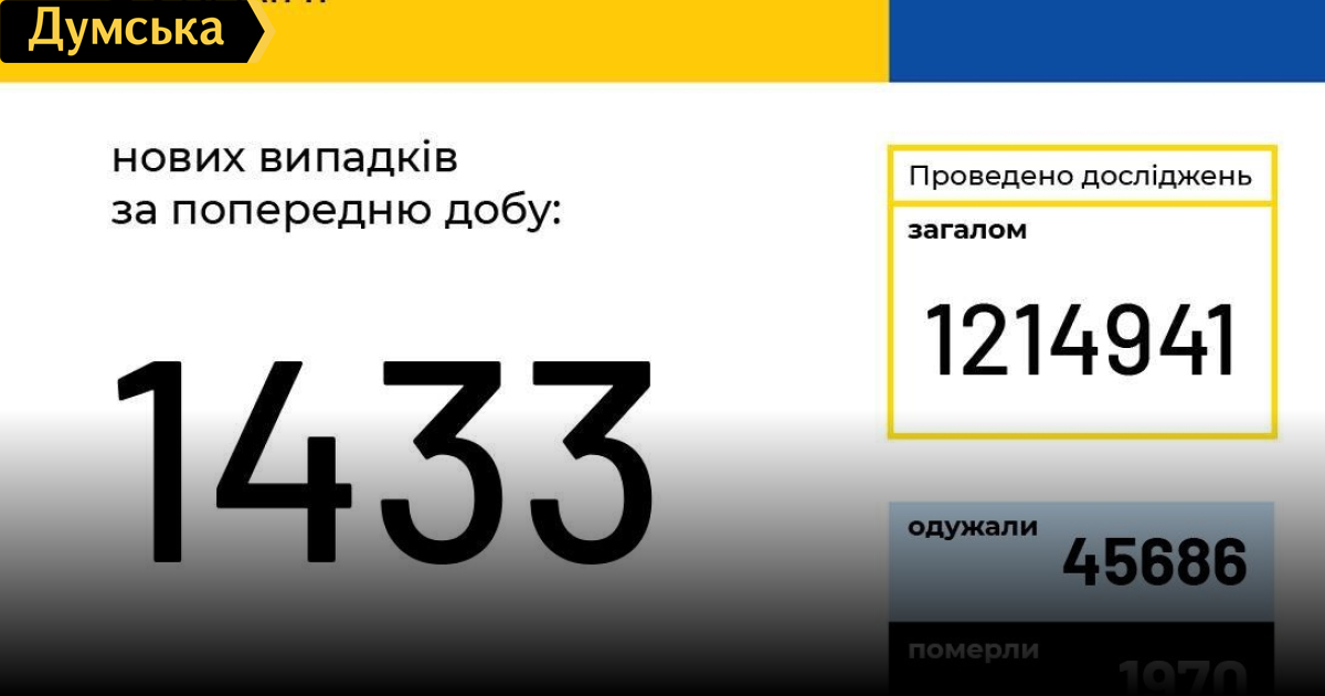 В Украине резко выросло количество заболевших COVID-19: за сутки 1433 новых случая