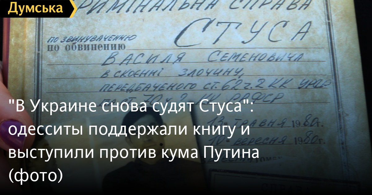 «В Украине снова судят Стуса. Его самого — убитого коммунистическим режимом — уже нет в зале суда. Поэтому обвиняется книга о нем. Зато другой участник процесса тот же, что и при жизни поэта — Виктор Медведчук. Теперь он не помогает советской системе судить его, а хочет остановить распространение книги о поэте. Это издание подготовлено Вахтангом Кипиани на базе архивов КГБ. Материалы из книги были под строгим секретом в СССР. Запрет суда на распространение книги будет означать, что СССР не исчез», — написал Вятрович на своей странице в Facebook.