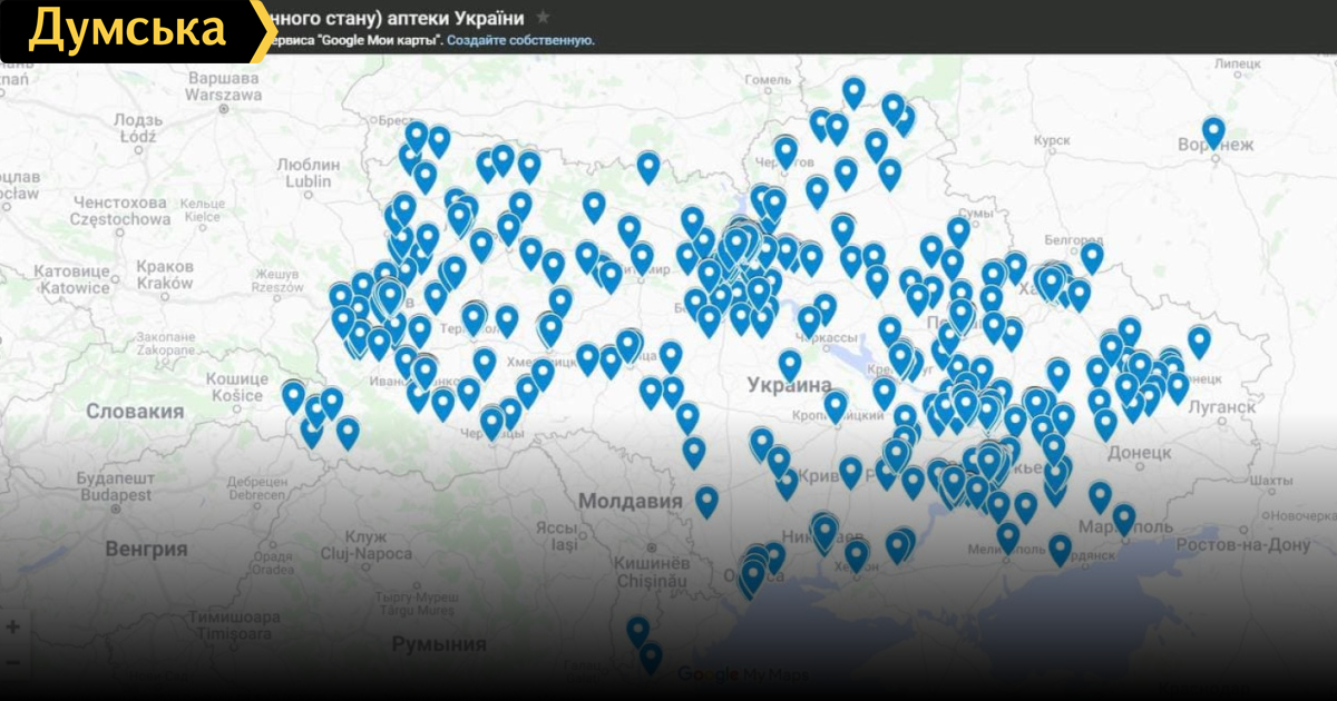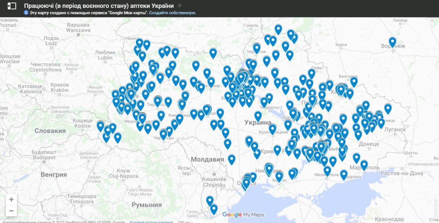 Создана карта действующих в военное время аптек на территории Украины. Актуальная информация по ссылке. Кроме того, дополнительно создан табличный вариант, в котором информация обновляется гораздо быстрее. СМЕРТЬ РОСІЙСЬКИМ ОКУПАНТАМ! Помітили помилку? Виділяйте слова з помилкою та натискайте control-enter |