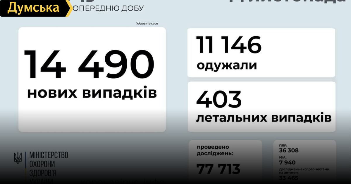 11490 новых случаев заражения COVID-19зафиксировали 13 ноября на территории Украины. За время пандемии в стране заболели коронавирусом 3217639 человек. Как сообщили в Министерстве здравоохранения, вчера от осложнений ковида умерли 403 пациента (76705). 11146 человек вылечились (2631240). Ковидные больницы по стране заняты на 62% (48612 коек из 78387). Первую дозу вакцины вчера получили 65757 человек (12187559), а вторую – 79484 (8665945). СМЕРТЬ РОСІЙСЬКИМ ОКУПАНТАМ! Помітили помилку? Виділяйте слова з помилкою та натискайте control-enter |