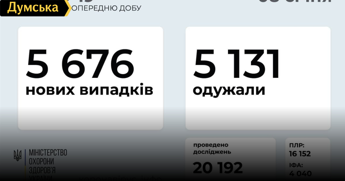 7 января в Украине зафиксировали 5676 новых случаев заражения COVID-19. С начала пандемии в стране заболели уже 1105169 человек. По данным Минздрава, больше всего новых «ковидных» больных вчера зафиксировали в Киеве – 438 человек, на втором месте Днепропетровская область – 376, на третьем Киевская – 371. 83 человека вчера умерли от осложнений «ковида». Больше всего в Запорожской области – 18 человек, в Днепропетровской области – 13, в Киеве – 11. Выздоровел 5131 пациент за сутки. Лидирует Запорожская область – 696, за ней Ивано-Франковская – 628 и Сумская – 473. Еще 5537 человек получили подозрения на COVID-19. По количеству новых подозрений в первую тройку вошли Донецкая область – 388, Днепропетровская область – 377, Житомирская и Запорожская области – по 358. СМЕРТЬ РОСІЙСЬКИМ ОКУПАНТАМ! Помітили помилку? Виділяйте слова з помилкою та натискайте control-enter Новини по цій темі: 4 березня 2023: "Вакцини-довгожителі", або Як щеплення проти COVID-19 перетворилися в Україні на небезпечний ритуал 27 січня 2023: МОЗ зобов`язали опублікувати договори на закупівлю вакцин проти COVID-19: апеляційний суд задовольнив позов журналіста "Думської" 11 січня 2023: За тиждень в Одесі зафіксовано 159 випадків ковіду 4 січня 2023: За тиждень в Одесі зареєстровано 113 випадків ковіду |