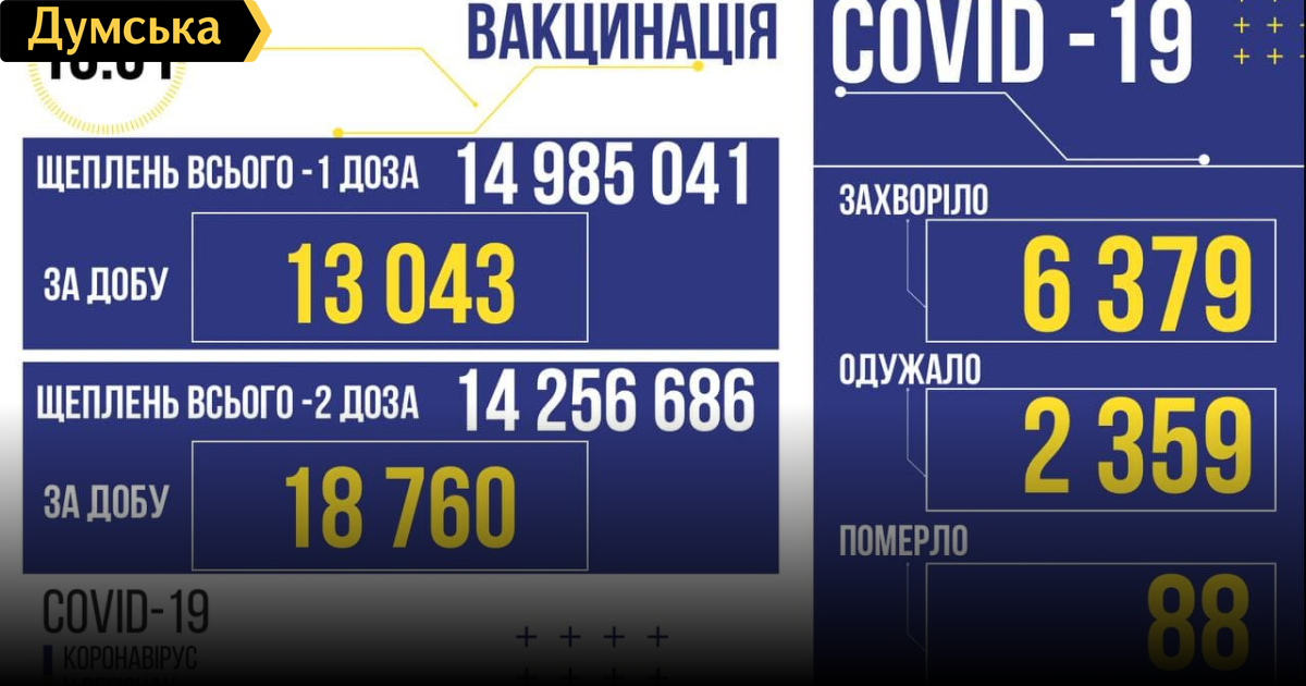 В Украине за сутки коронавирусом заболели 6379 человек, 88 пациентов скончались6379 новых случаев заражения COVID-19 зафиксировали 15 января на территории Украины. С начала пандемии ковид обнаружили у 3754458 жителей страны. В Министерстве здравоохранения сообщили о 88 смертях от осложнений ковида за минувшие сутки (98283). Выздоровели 2359 пациентов (3553642). Ковидные больницы по стране загружены на 22% (заняты 14189 коек из 64373). Первую дозу вакцины вчера получили 13043 человека (14985041), вторую – 18760 (14256686), бустерную – 7752 (94948), дополнительную – 214 (9512). СМЕРТЬ РОСІЙСЬКИМ ОКУПАНТАМ! Помітили помилку? Виділяйте слова з помилкою та натискайте control-enter Новини по цій темі: 4 березня 2023: "Вакцини-довгожителі", або Як щеплення проти COVID-19 перетворилися в Україні на небезпечний ритуал 27 січня 2023: МОЗ зобов`язали опублікувати договори на закупівлю вакцин проти COVID-19: апеляційний суд задовольнив позов журналіста "Думської" 11 січня 2023: За тиждень в Одесі зафіксовано 159 випадків ковіду 4 січня 2023: За тиждень в Одесі зареєстровано 113 випадків ковіду |