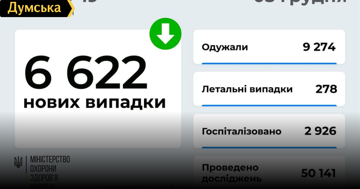 В Украине за сутки коронавирусом заболели более 6,5 тысяч человек, 278 инфицированных умерли6622 случаев заражения коронавирусной инфекцией обнаружили 4 декабря в Украине. С начала пандемии ковидом заболели 3497477 жителей страны. В Министерстве здравоохранения сообщили, что накануне от осложнений коронавируса умерли 278 пациентов (88280). 9274 человек выздоровели (3050659). Коечный фонд в ковидных больницах загружен на 39,9% (31330 коек из 78575). Первую дозу вакцины вчера получили 40278 человека (13725903), а вторую – 72379 (11762441). СМЕРТЬ РОСІЙСЬКИМ ОКУПАНТАМ! Помітили помилку? Виділяйте слова з помилкою та натискайте control-enter Новини по цій темі: 4 березня 2023: "Вакцини-довгожителі", або Як щеплення проти COVID-19 перетворилися в Україні на небезпечний ритуал 27 січня 2023: МОЗ зобов`язали опублікувати договори на закупівлю вакцин проти COVID-19: апеляційний суд задовольнив позов журналіста "Думської" 11 січня 2023: За тиждень в Одесі зафіксовано 159 випадків ковіду 4 січня 2023: За тиждень в Одесі зареєстровано 113 випадків ковіду |