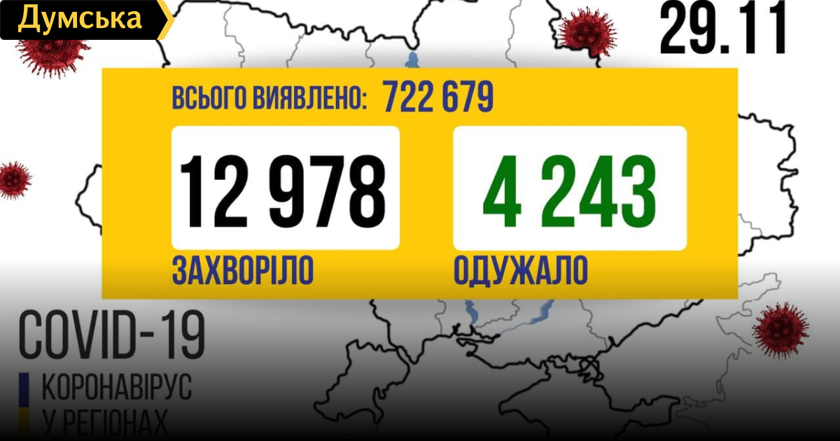 12978 новых заболевших COVID-19 зафиксировал Минздрав Украины 28 ноября. Всего с начала пандемии в Украине заразились 722679 человек. Больше всего новых случаев заражения в Киеве – 1740, на втором месте Одесская область – 1280, третья Днепропетровская область – 1164. Как сообщили в Минздраве, от осложнений «ковида» вчера скончались 120 пациентов. Самая высокая смертность была в Запорожской области – 20, в Одесской и Полтавской областях по 12 летальных исходов. Выздоровели за сутки 4243 человека. Лидирует харьковская область – 1156 выздоровевших. В то же время врачи поставили 12290 новых подозрений на «ковид». На первом месте Одесская область – 1281, на втором Киев – 1170, на третьем Днепропетровская область – 1162. СМЕРТЬ РОСІЙСЬКИМ ОКУПАНТАМ! Помітили помилку? Виділяйте слова з помилкою та натискайте control-enter Новини по цій темі: 4 березня 2023: "Вакцини-довгожителі", або Як щеплення проти COVID-19 перетворилися в Україні на небезпечний ритуал 27 січня 2023: МОЗ зобов`язали опублікувати договори на закупівлю вакцин проти COVID-19: апеляційний суд задовольнив позов журналіста "Думської" 11 січня 2023: За тиждень в Одесі зафіксовано 159 випадків ковіду 4 січня 2023: За тиждень в Одесі зареєстровано 113 випадків ковіду |